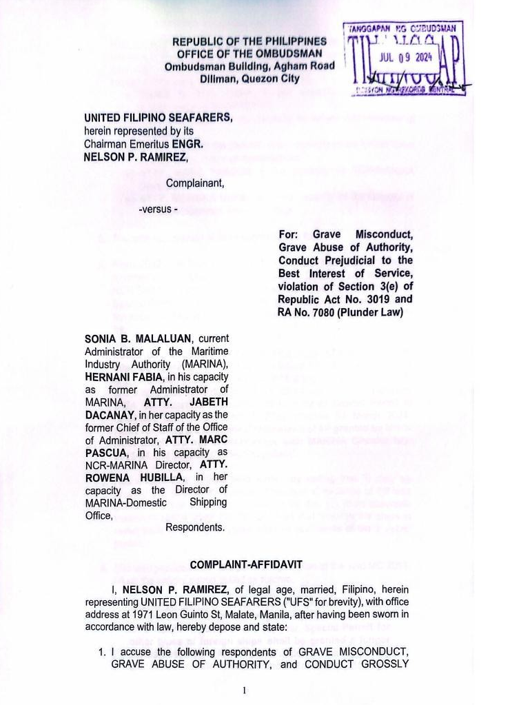 THE United Filipino Seafarers (UFS) on Tuesday filed graft and plunder charges before the Office of the Ombudsman against former and current officials of the...