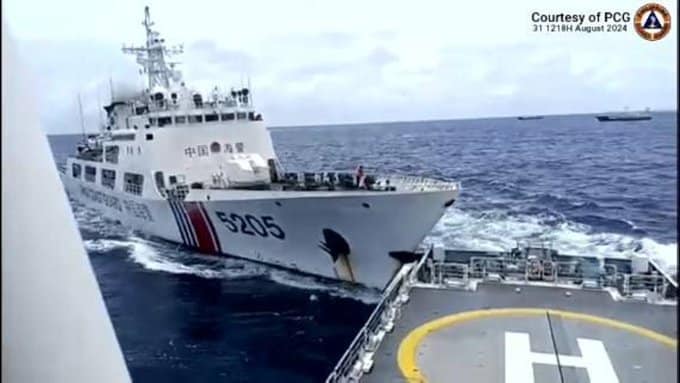 CHINA COAST GUARD VESSEL RAMS BRP TERESA MAGBANUA IN ESCODA SHOAL, PH PATROL SHIP DAMAGED