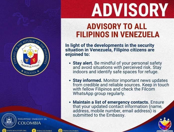 DFA ISSUES TRAVEL, SAFETY ADVISORY TO FILIPINOS IN VENEZUELA
