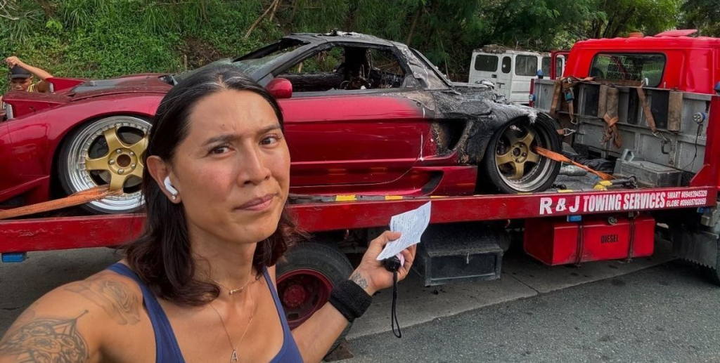 RACER and businesswoman Angie Mead King was thankful to be alive after her sports car on Thursday afternoon caught fire at the South Luzon Expressway (SLEX).