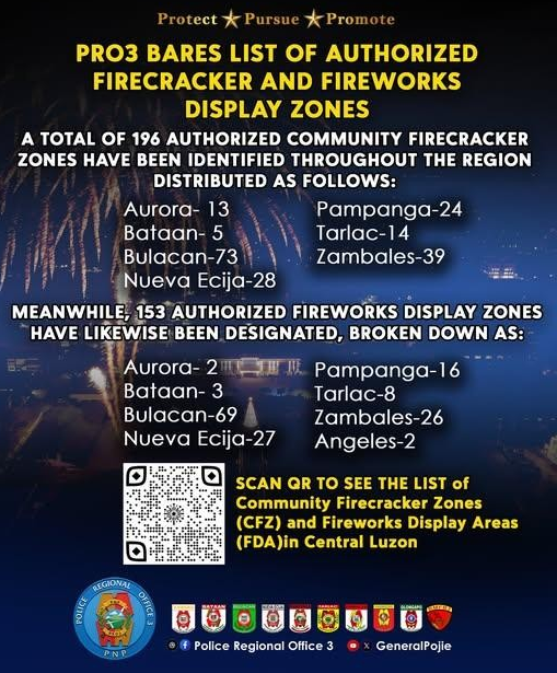 PRO3 IDENTIFIES AUTHORIZED FIRECRACKER, FIREWORKS DISPLAY ZONES IN CENTRAL LUZON
