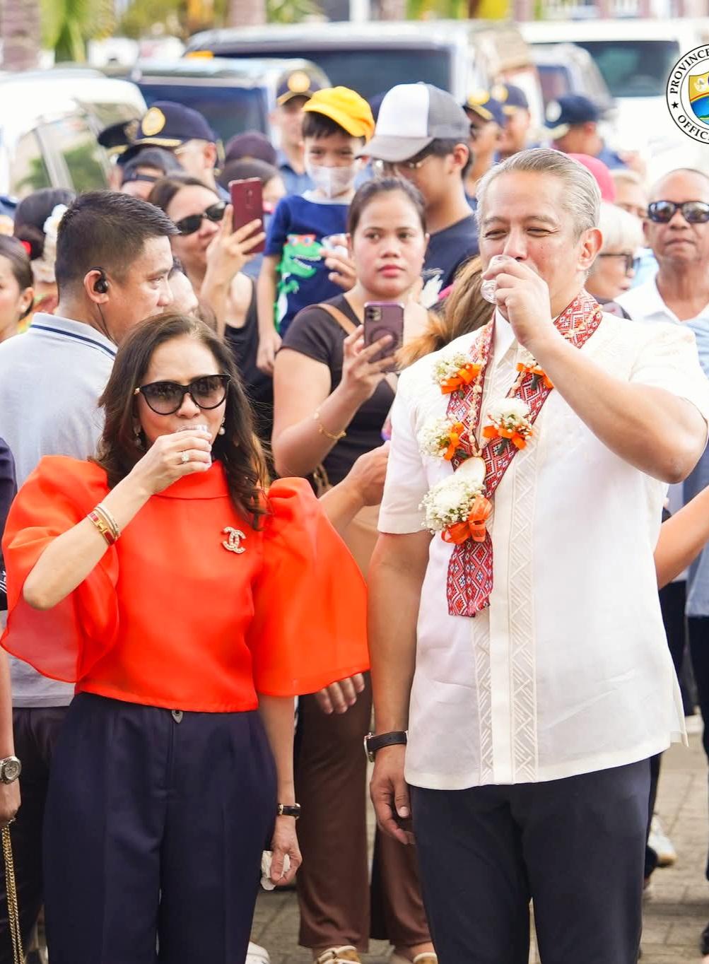 ‘TAGAY RITUAL.’ Department of the Interior and Local Government (DILG) Secretary Jonvic Remulla joins Quezon Gov. Angelina “Doktora Helen” Tan in the traditional “Tagayan...