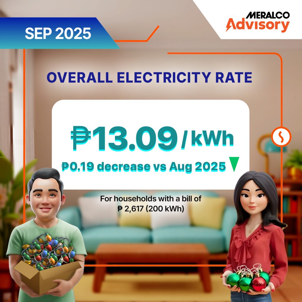 THE Manila Electric Company (Meralco) has announced a decrease of P0.1852 per kWh this September due to lower generation charge. This brings the overall...