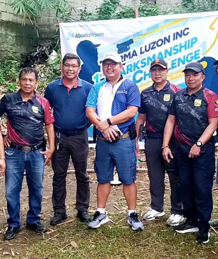 FUN SHOOT. Operated Assets of AboitizPower – Transition Business Group chief operating officer Ronaldo Ramos (center) leads the ceremonial shoot during the opening of “Therma Luzon Inc. 1st Defensive Marksmanship Challenge,” a Level 1 PPSA- sanctioned match, held in cooperation with the Quezon Police Provincial Office. Ramos said they hold deep respect and gratitude for their partners in law enforcement and security in Quezon province. He said Quezon police’ commitment to protecting lives and maintaining peace and order allows companies like them to do their work safely and confidently. Ramos is flanked from left by Gun Club president Jay Formaran, the match Range Master; Pagbilao transition director of Therma Luzon Inc. Dondon Nanual, Quezon police director Col. Romulo Albacea and People’s Journal reporter Gemi Formaran who belongs to the match officiating team of range officers.