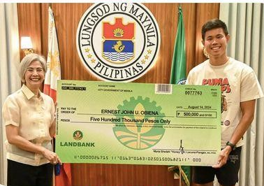 MANILA Mayor Dr. Honey Lacuna-Pangan on Wednesday afternoon awarded P500,000 in cash incentives to Olympian pole vaulter Ernest John “EJ” Obiena held at the...